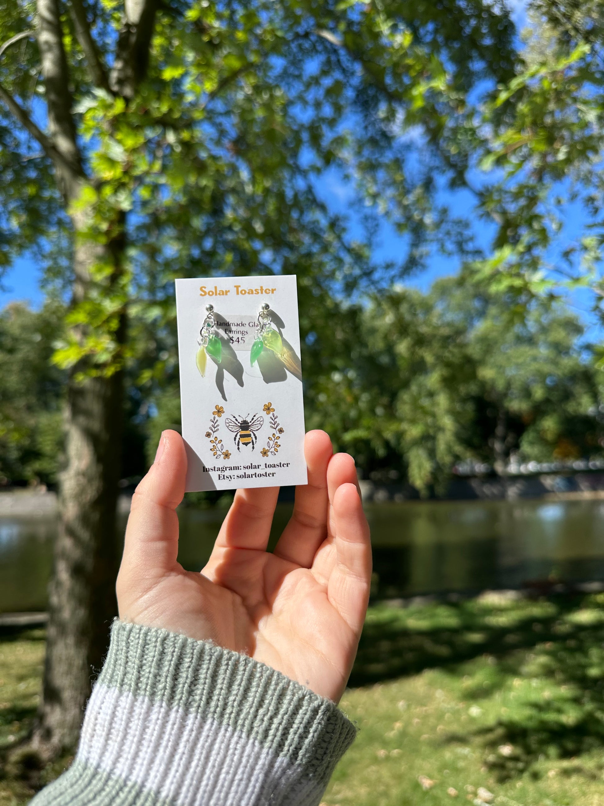 These super cute and lightweight leaf earrings are handmade and one of a kind. They are made using flameworking to craft these dainty designs.